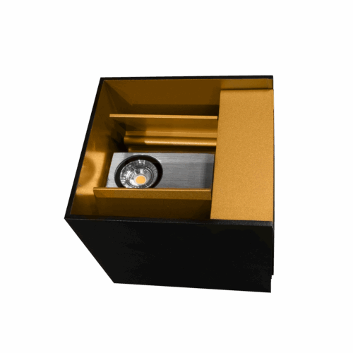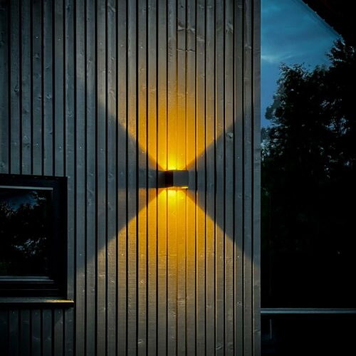 Duhr Square er en veggmontert armatur med opp -og nedlys i moderne design. Lysfordelingen kan justeres fra 10°-160° ved å endre posisjon på de innvendige klaffene. Dette gjør den meget anvendelig for de fleste rom og vil gi et eksklusivt uttrykk.