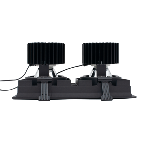 Quadro The series comes in both single and double versions. The downlight has taken its design from the series that is rail-mounted. This makes for a very nice and unique set of lights where you will be using both recessed and rail-mounted fixtures.