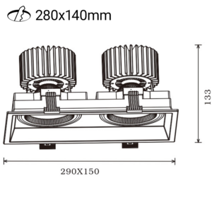 Quadro The series comes in both single and double versions. The downlight has taken its design from the series that is rail-mounted. This makes for a very nice and unique set of lights where you will be using both recessed and rail-mounted fixtures.