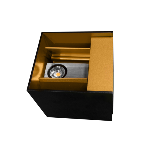 Duhr Square er en veggmontert armatur med opp -og nedlys i moderne design. Lysfordelingen kan justeres fra 10°-160° ved å endre posisjon på de innvendige klaffene. Dette gjør den meget anvendelig for de fleste rom og vil gi et eksklusivt uttrykk.