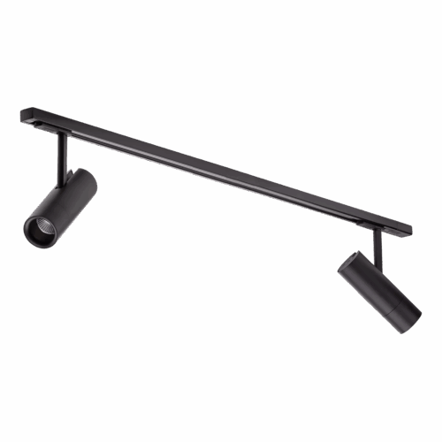 Spottene kan vinkles opptil 90 grader og roteres 350 grader etter ønske, og beveges frem og tilbake på skinnen for mest mulig fleksibel lysspredning. Selve spotlighten har en lengde på 22 cm og en diameter på 60mm.