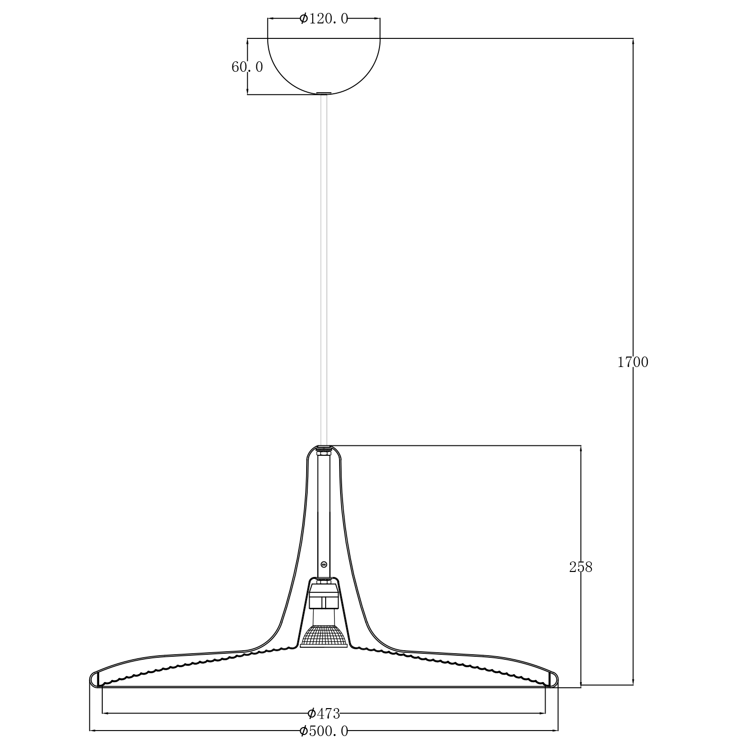 Nedhengt pendel inkludert dimbar GU10 lyskilde på 5W, 3000K og CRI 80.