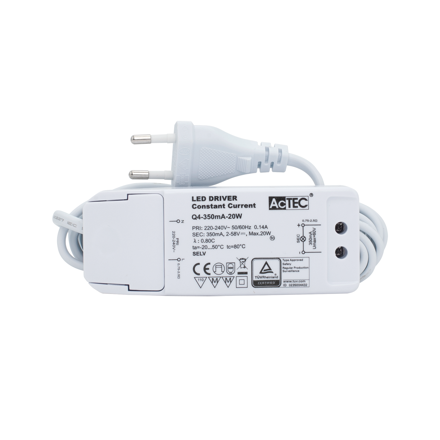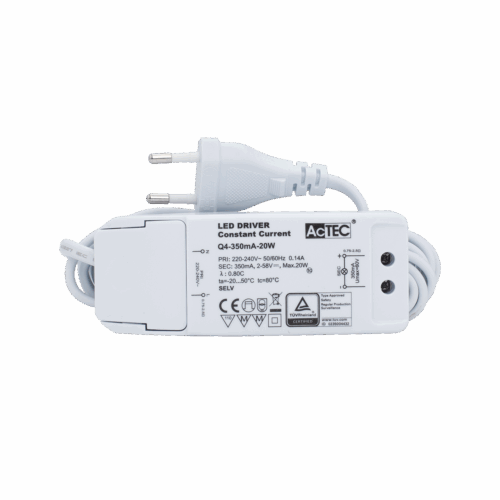 «Universal» 350mA konstant strøm driver med 2-58V spenningsvindu. 3m ledning på primærsiden. Passer fint til Aludra (1-5 stk) og Capella (1-17 stk).
