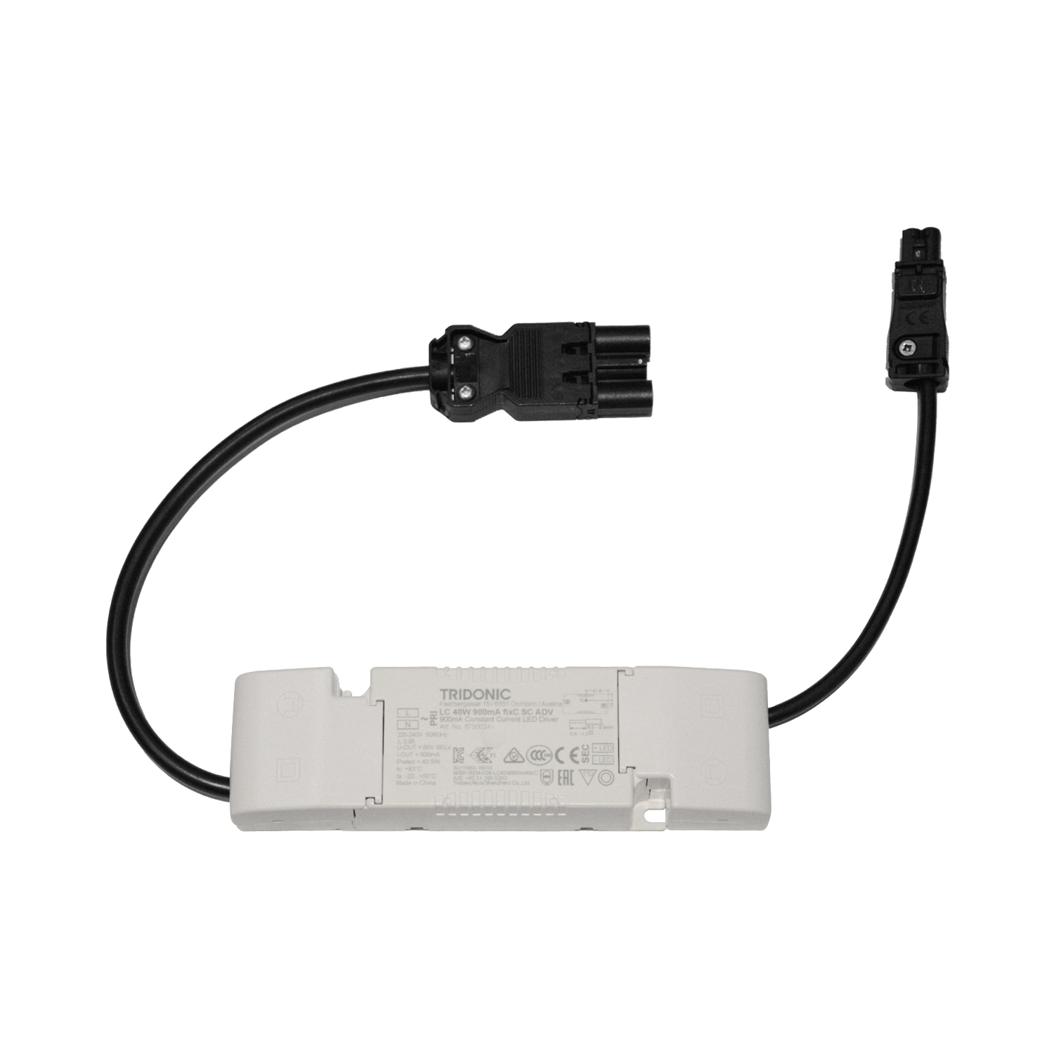 Tridonic On/Off driver innstilt på 600mA, max 25W.