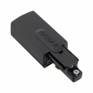 Global Base 1-fase strømforsyning. Brukes til å koble spenning (230V) til enden av skinnen. Tilgjengelig i to varianter (GB11 & GB12) avhengig av hvilken side av skinnen strømforsyningen skal kobles til. Når du kobler til en rett skinnelengde, er typen strømforsyning ikke avgjørende ettersom skinnen kan snus om nødvendig. Imidlertid anbefaler vi vanligvis å bruke den venstre tilkoblingen (GB11), da det gir bedre utnyttelse av skinnens bredde. Dette skyldes at spotlighten kun kan monteres fra én side av skinnen. Ved å montere strømforsyning på venstre side får du bedre utnyttelsen av skinnens bredde.