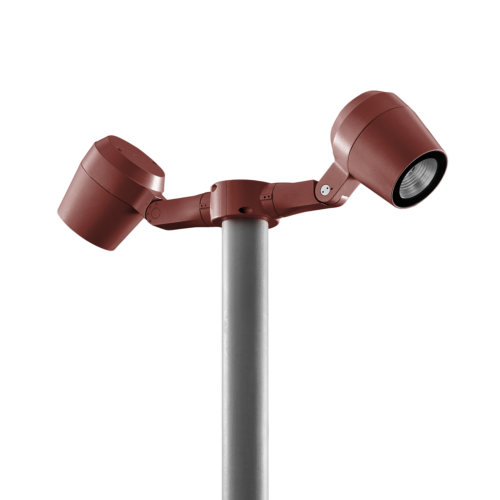 Denne utendørs flomlyset er designet for installasjon på en stang med en diameter på enten 60 mm. Med en 355° svingbar stangmontering gir det omfattende bevegelse og tilbyr horisontal justering innenfor et område på +90° til -40°. Konstruksjonen inkluderer en base og hode laget av fosfokromatisert og polyesterpulverbelagt støpt kobberfritt aluminium, som sikrer holdbarhet og motstand mot korrosjon. Denne varianten er lakkert i farge RAL3009