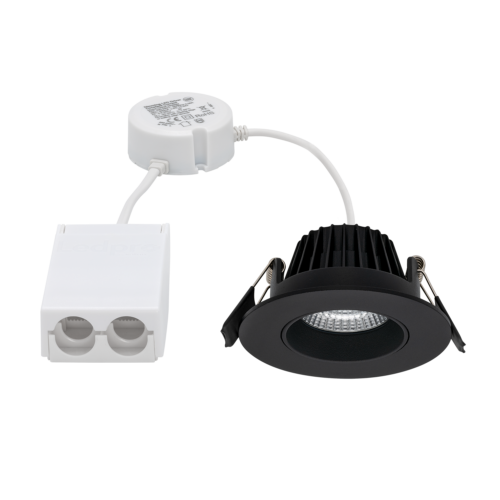 7W downlight i hög kvalitet som kan installeras direkt i isoleringen. Med håldimensioner från Ø68-83 mm är den perfekt för både renovering och nybyggnation. 36° ljusspridningsvinkel och är vinklingsbar 25°. CRI>95 och flimmerfri Phasecutsdrivare.